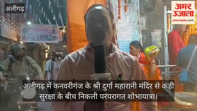 अलीगढ़ में कनवरीगंज के श्री दुर्गा महारानी मंदिर से कड़ी सुरक्षा के बीच निकली परंपरागत शोभायात्रा