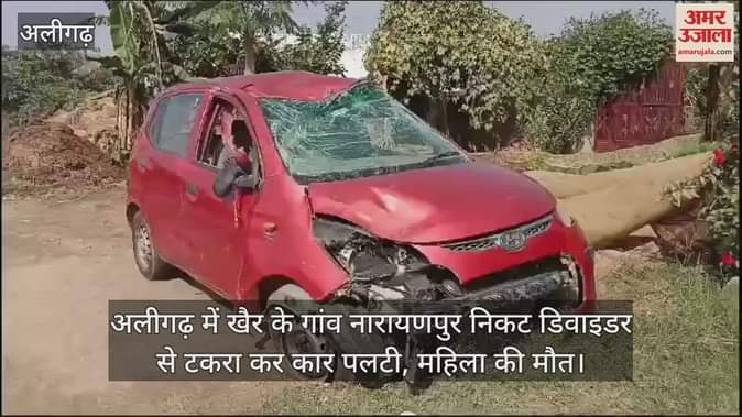 VIDEO : अलीगढ़ में खैर के गांव नारायणपुर निकट डिवाइडर से टकरा कर कार पलटी, महिला की मौत