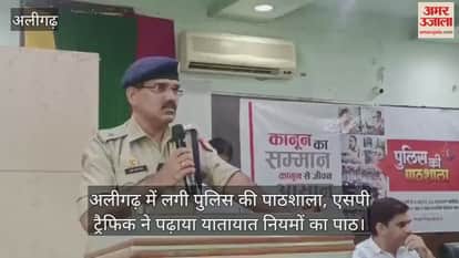 VIDEO : अलीगढ़ में लगी पुलिस की पाठशाला, एसपी ट्रैफिक ने पढ़ाया यातायात नियमों का पाठ