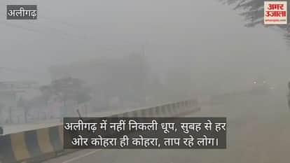 अलीगढ़ में नहीं निकली धूप, सुबह से हर ओर कोहरा ही कोहरा, ताप रहे लोग
