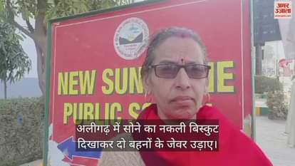 VIDEO : अलीगढ़ में सोने का नकली बिस्कुट दिखाकर दो बहनों के जेवर उड़ाए