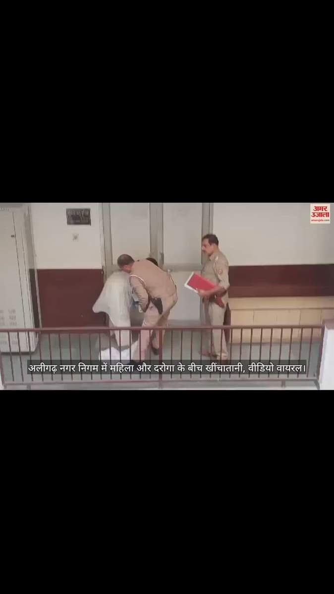 VIDEO : अलीगढ़ नगर निगम में महिला और दरोगा के बीच खींचातानी, वीडियो वायरल