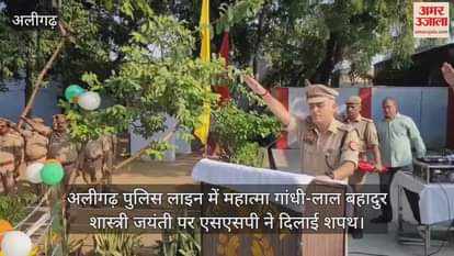 अलीगढ़ पुलिस लाइन में महात्मा गांधी-लाल बहादुर शास्त्री जयंती पर एसएसपी ने दिलाई शपथ