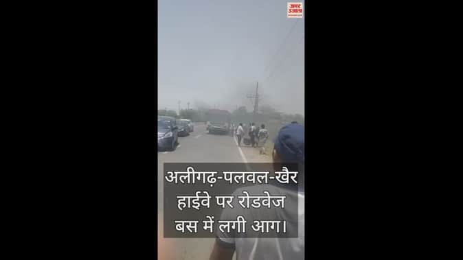 VIDEO : अलीगढ़-पलवल-खैर हाईवे पर रोडवेज बस में लगी आग