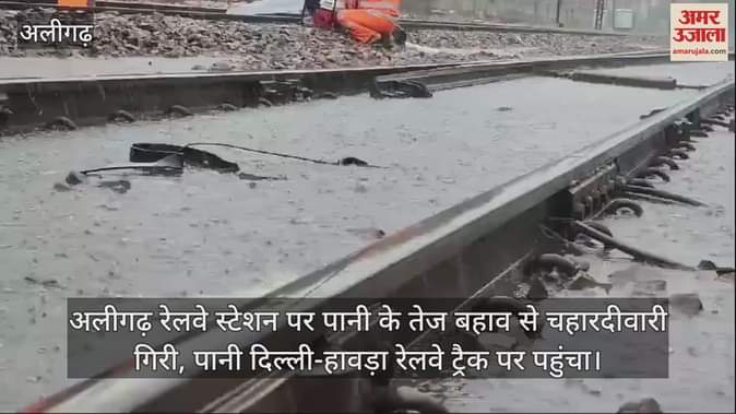VIDEO : अलीगढ़ रेलवे स्टेशन पर पानी के तेज बहाव से चहारदीवारी गिरी, पानी दिल्ली-हावड़ा रेलवे ट्रैक पर पहुंचा