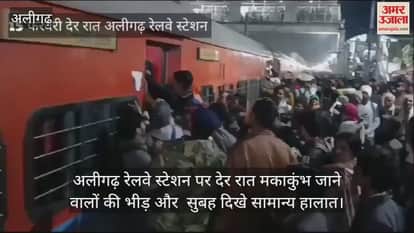 VIDEO : अलीगढ़ रेलवे स्टेशन पर देर रात मकाकुंभ जाने वालों की भीड़ और सुबह दिखे सामान्य हालात