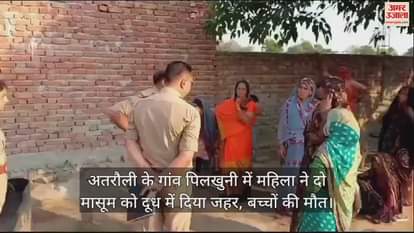 VIDEO : अतरौली के गांव पिलखुनी में महिला ने दो मासूम को दूध में दिया जहर, बच्चों की मौत