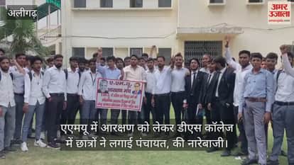 VIDEO : एएमयू में आरक्षण को लेकर डीएस कॉलेज में छात्रों ने लगाई पंचायत, की नारेबाजी