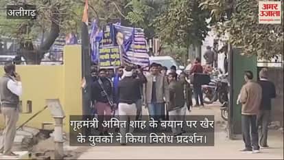 VIDEO : गृहमंत्री अमित शाह के बयान पर खैर के युवकों ने किया विरोध प्रदर्शन
