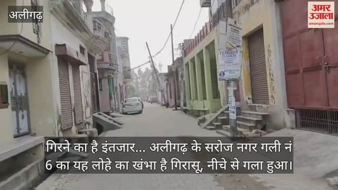 गिरने का है इंतजार... अलीगढ़ के सरोज नगर गली नं 6 का यह लोहे का खंभा है गिरासू, नीचे से गला हुआ