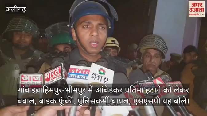 VIDEO : गांव इब्राहिमपुर-भीमपुर में आंबेडकर प्रतिमा हटाने को लेकर बवाल, बाइक फूंकीं, पुलिसकर्मी घायल, एसएसपी यह बोले
