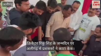 VIDEO : क्रिकेटर रिंकू सिंह के जन्मदिन पर अलीगढ़ में प्रशंसकों ने काटा केक
