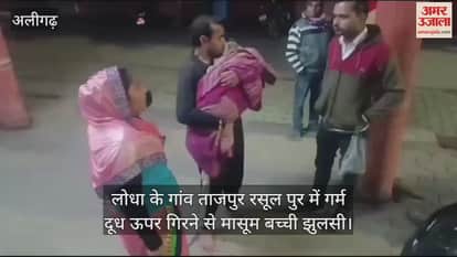 अलीगढ़ में लोधा थाना क्षेत्र के गांव खुसावली निवासी वीरेंद्र सिंह अपने परिवार को लेकर गांव ताजपुर रसूल पुर में किराये के मकान पर रहते हैं। 13 जनवरी की शाम को वीरेंद्र सिंह मजदूरी कर घर आया। पत्नी वीरेंद्र को खाना देने लगी। वीरेंद्र सिंह की 11 माह की पुत्री मुस्कान चारपाई पर खेल रही थी। अचानक उसने अलमारी में रखे गर्म दूध के भगोने में हाथ मार दिया। पूरा गर्म दूध बच्ची के ऊपर गिर गिया। जिससे बच्ची झुलस कर घायल हो गई।