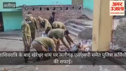 महाशिवरात्रि के बाद खेरेश्वर धाम पर अलीगढ़ एसएसपी समेत पुलिस कर्मियों ने सफाई की। थाना लोधा अंतर्गत खेरेश्वर मन्दिर में वरिष्ठ पुलिस अधीक्षक नीरज जादौन, पुलिस अधिकारियों एवं कर्मचारियों ने श्रमदान कर विशेष स्वच्छता अभियान चलाया।