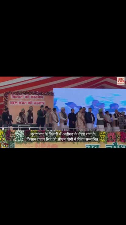 VIDEO : मुरादाबाद के बिलारी में अलीगढ़ के तेहरा गांव के केिसान प्रताप सिंह को सीएम योगी ने किया सम्मानित