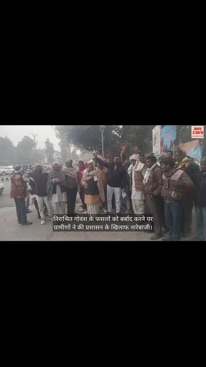 VIDEO : निराश्रित गोवंश के फसलों को बर्बाद करने पर ग्रामीणों ने की प्रशासन के खिलाफ नारेबाजी