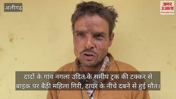 VIDEO : दादों के गांव नगला उदित के समीप ट्रक की टक्कर से बाइक पर बैठी महिला गिरी, टायर के नीचे दबने से हुई मौत