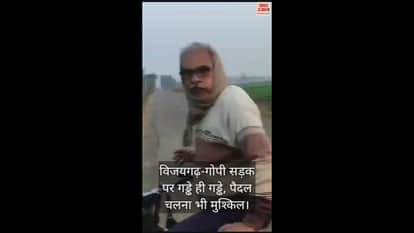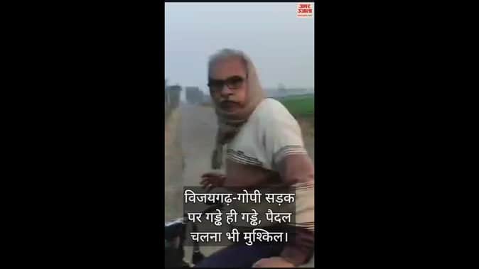 VIDEO : विजयगढ़-गोपी सड़क पर गड्ढे ही गड्ढे, पैदल चलना भी मुश्किल