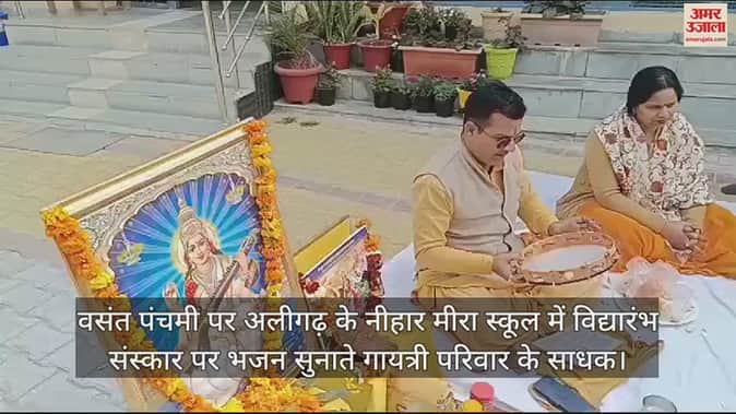 VIDEO : वसंत पंचमी पर अलीगढ़ के नीहार मीरा स्कूल में विद्यारंभ संस्कार पर भजन सुनाते गायत्री परिवार के साधक