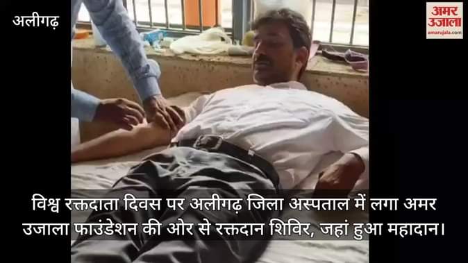 विश्व रक्तदाता दिवस पर अलीगढ़ जिला अस्पताल में अमर उजाला फाउंडेशन की ओर से रक्तदान शिविर लगाया गया, जहां रक्तदाताओं ने रक्तदान यानी महादान किया। जिसमें कई संगठनों ने सहयोग किया।