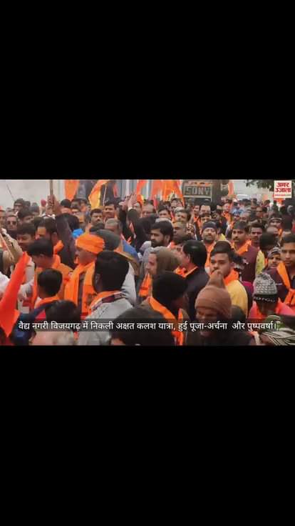 VIDEO : वैद्य नगरी विजयगढ़ में निकली अक्षत कलश यात्रा, हुई पूजा-अर्चना और पुष्पवर्षा