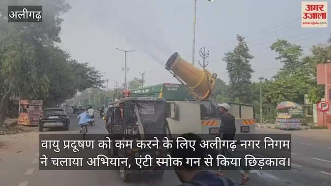 वायु प्रदूषण को कम करने के लिए अलीगढ़ नगर निगम ने चलाया अभियान, एंटी स्मोक गन से किया छिड़काव