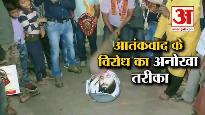 प्रयागराज में मुगदड़ से कुचला गया मसूद अजहर का सिर, इमरान खान का फूंका गया पुतला
