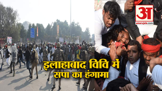 इलाहाबाद विवि में सपा कार्यकर्ताओं का हंगामा, पुलिस ने किया लाठीचार्ज