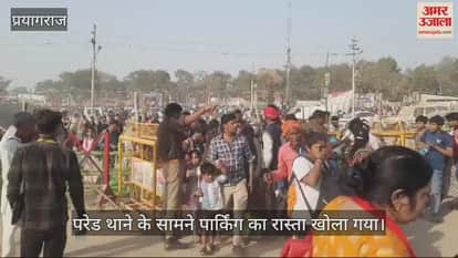 VIDEO : भीड़ का दबाव बढ़ने के बाद परेड थाने के सामने स्थित पार्किंग का रास्ता खोल दिया गया