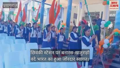 छिवकी स्टेशन पर बनारस-खजुराहो वंदे भारत का हुआ जोरदार स्वागत, ट्रेन के पहुंचते ही लगे जयकारे