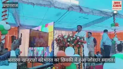 बनारस-खजुराहो वंदेभारत का प्रयागराज में हुआ जोरदार स्वागत, दिखाई गई हरी झंडी