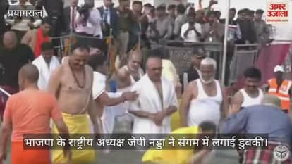 VIDEO : भाजपा के राष्ट्रीय अध्यक्ष जेपी नड्डा पहुंचे प्रयागराज महाकुंभ, संगम में लगाई डुबकी