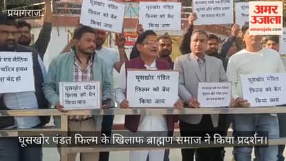 प्रयागराज में बालसन चौराहा स्थित महर्षि भरद्वाज की प्रतिमा के नीचे बॉलीवुड फिल्म घूसखोर पंडत के खिलाफ विरोध प्रदर्शन किया गया। फिल्म को तत्काल प्रभाव से बैन क रने की मांग की गई साथ ही निर्माता निर्देशक और अभिनेता के खिलाफ कड़ी कार्रवाई की जाए। कहा कि साजिश के तहत यह फिल्म बनाई गई है ताकि ब्राह्मणों का अपमान किया जा सके।