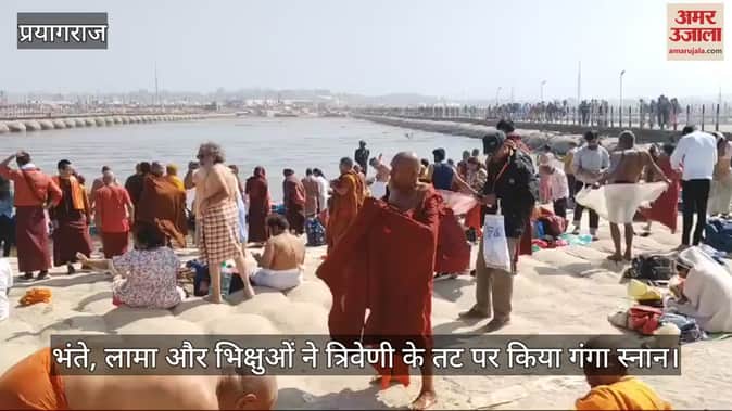 VIDEO : बौद्ध धर्म के भंते, लामा और भिक्षुओं ने त्रिवेणी के तट पर किया गंगा स्नान