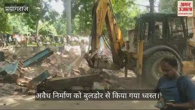 VIDEO : प्रयागराज में गरजा बुलडोजर, नगर निगम की कार्रवाई से कब्जेदारों में मची रही खलबली