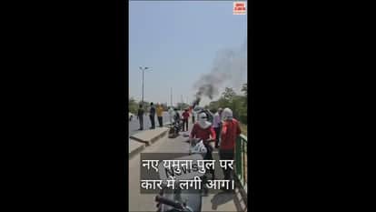 VIDEO : नए यमुना पुल पर कार में लगी आग, बाल बाल बचे लोग