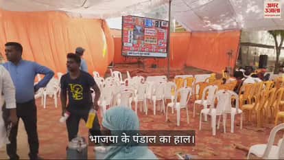 VIDEO : मतगणना स्थल पर भाजपा के टेंट में कुर्सियां खाली, कांग्रेस के कार्यकर्ताओं में उत्साह