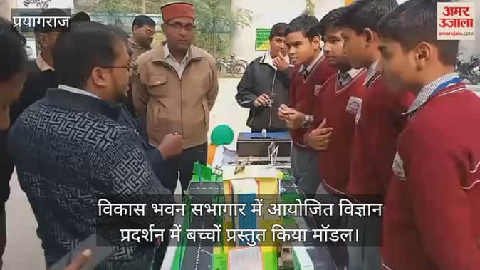 विकास भवन सभागार में आयोजित विज्ञान प्रदर्शन में बच्चों प्रस्तुत किया मॉडल