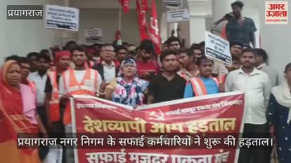 प्रयागराज नगर निगम के सफाई कर्मचारियों ने शुरू की हड़ताल, जमकर की गई नारेबाजी