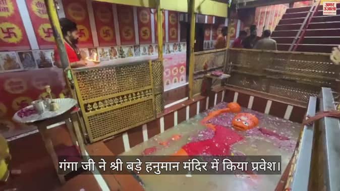VIDEO : मां गंगा ने श्री बड़े हनुमान मंदिर में किया प्रवेश, गूंजा जयकारा, दर्शन करने के लिए उमड़े भक्त
