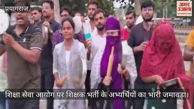 Prayagraj - शिक्षा सेवा आयोग पर शिक्षक भर्ती के अभ्यर्थियों का भारी जमावड़ा, लगातार छठे दिन जारी रहा धरना