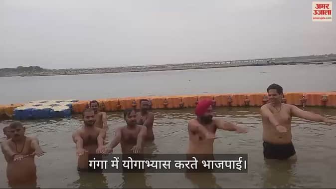 VIDEO : गंगा में योगाभ्यास करके दिया निरोगी जीवन का संदेश, भाजपा नेताओं की अनूठी पहल
