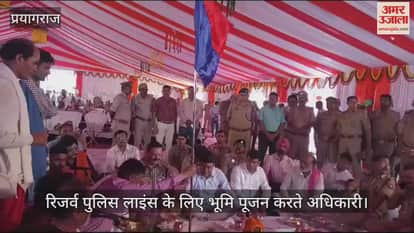 परेड मैदान में महाकुंभ 2025 के लिए रिजर्व पुलिस लाइन की भूमि का पूजन सोमवार को किया गया। कुंभ मेलाधिकारी विजय किरन आनंद, पुलिस कमिश्नर तरुण गाबा समेत तमाम अधिकारियों ने वैदिक मंत्रोच्चार के बीच विधि विधान से पूजा कर आरती उतारी।