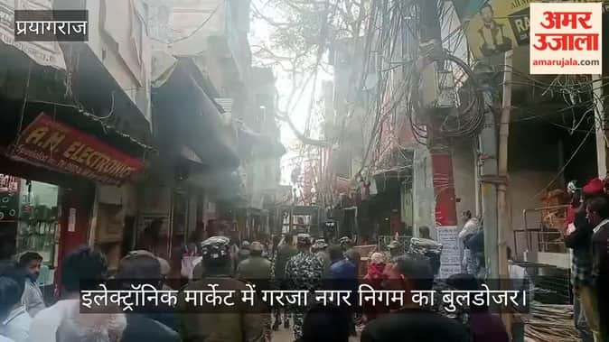 Prayagraj - जॉनसेनगंज इलेक्ट्रॉनिक मार्केट में गरजा नगर निगम का बुलडोजर