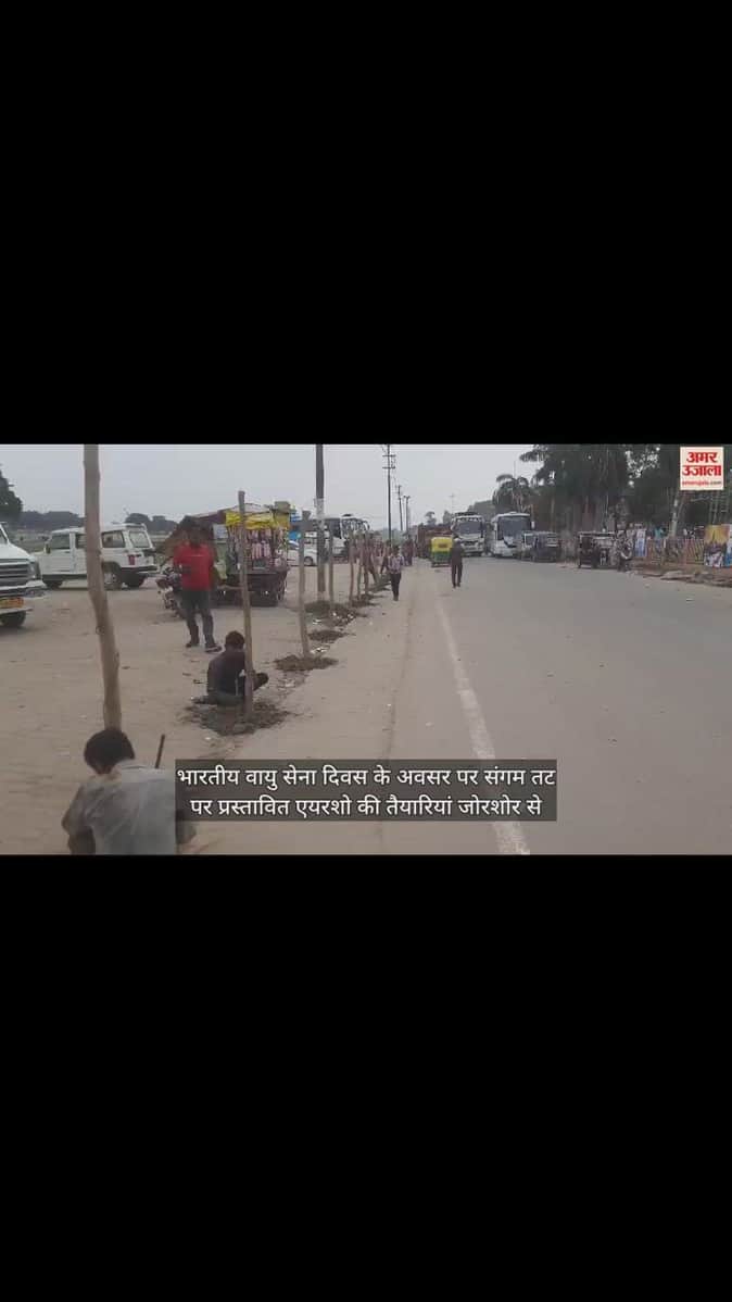 VIDEO : प्रयागराज में एयर शो के मद्देनजर संगम पर तैयारियां जोर-शोर से शुरू