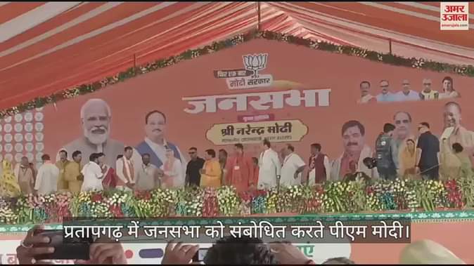 प्रधानमंत्री नरेंद्र मोदी गुरुवार को प्रतापगढ़ पहुंचे। राजकीय इंटर कॉलेज में आयोजित जनसभा को संबोधित करने के लिए मोदी करीब चार बजे पहुंचे। भाजपा प्रत्याशी संगमलाल गुप्ता के समर्थन में जनसभा को संबोधित किया। सपा और कांग्रेस ही उनके निशाने पर रही। राहुल गांधी और अखिलेश यादव को दिल्ली और लखनऊ वाले शहजादे कहकर संबोधित किया।
