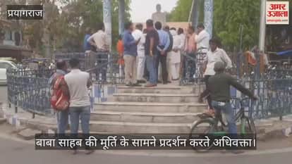 Prayagraj : बाबा साहब की मूर्ति से छेड़छाड़ पर भड़के अधिवक्ता, जोरदार नारेबाजी