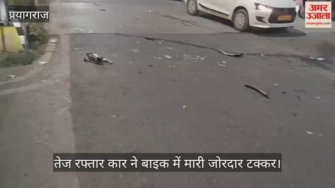 Prayagraj - तेज रफ्तार कार ने बाइक में मारी जोरदार टक्कर, सुभाष चौराहे पर हुआ हादसा