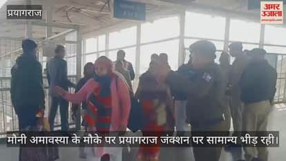 Prayagraj Junction witnessed moderate crowds on the occasion of Mauni Amavasya, with elaborate security arrangements in place.