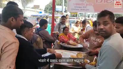 VIDEO : Prayagraj : मौनी अमावस्या पर चलाया गया भंडारे, प्रसाद लेने के लिए जुटे श्रद्धालु